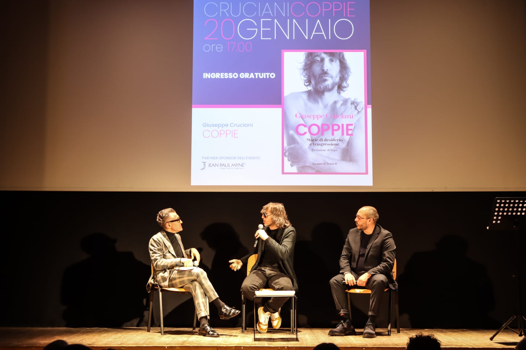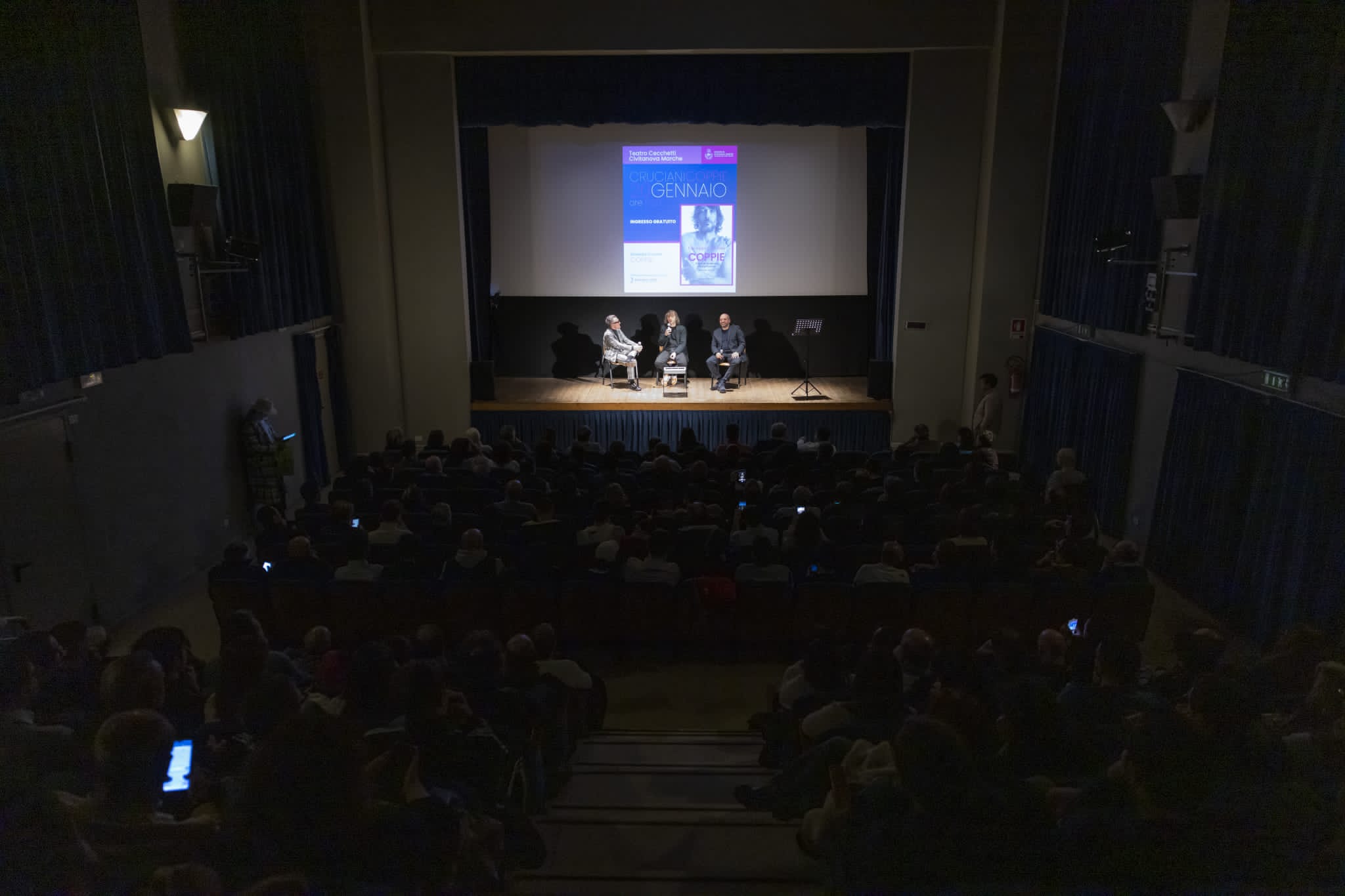 Teatro Cecchetti sold out per Giuseppe Cruciani, a Civitanova per la presentazione del libro “Coppie”. In tanti sono accorsi (molti rimasti fuori) per l’appuntamento con il giornalista e conduttore radiofonico, conosciuto al grande pubblico grazie alla trasmissione “La Zanzara”. L’iniziativa, patrocinata dal Comune di Civitanova, era organizzata da Gianluca Crocetti, presidente della Commissione Cultura e Turismo, che ha spalleggiato l’ospite, intervistato dal giornalista Luigi Brecciaroli. Cruciani ha raccontato capricci, sorprese quotidiane, sesso e amore, eccessi e abitudini delle coppie. “Sono contento della riuscita dell’evento, che rappresenta una tappa del percorso culturale ‘Filosofarte’ da me ideato insieme a Diego Fusaro” ha detto Crocetti. Prossimo appuntamento della rassegna, 3 febbraio nella sala consiliare, con Alberto Contri, presidente della Fondazione Pubblicità e Progresso, ex direttore Rai. Con lui ci sarà il filosofo Diego Fusaro.